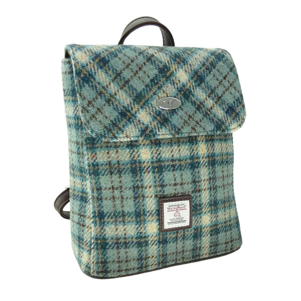 Ladies Authentic Harris Tweed Mini Backpack Sea Blue Check