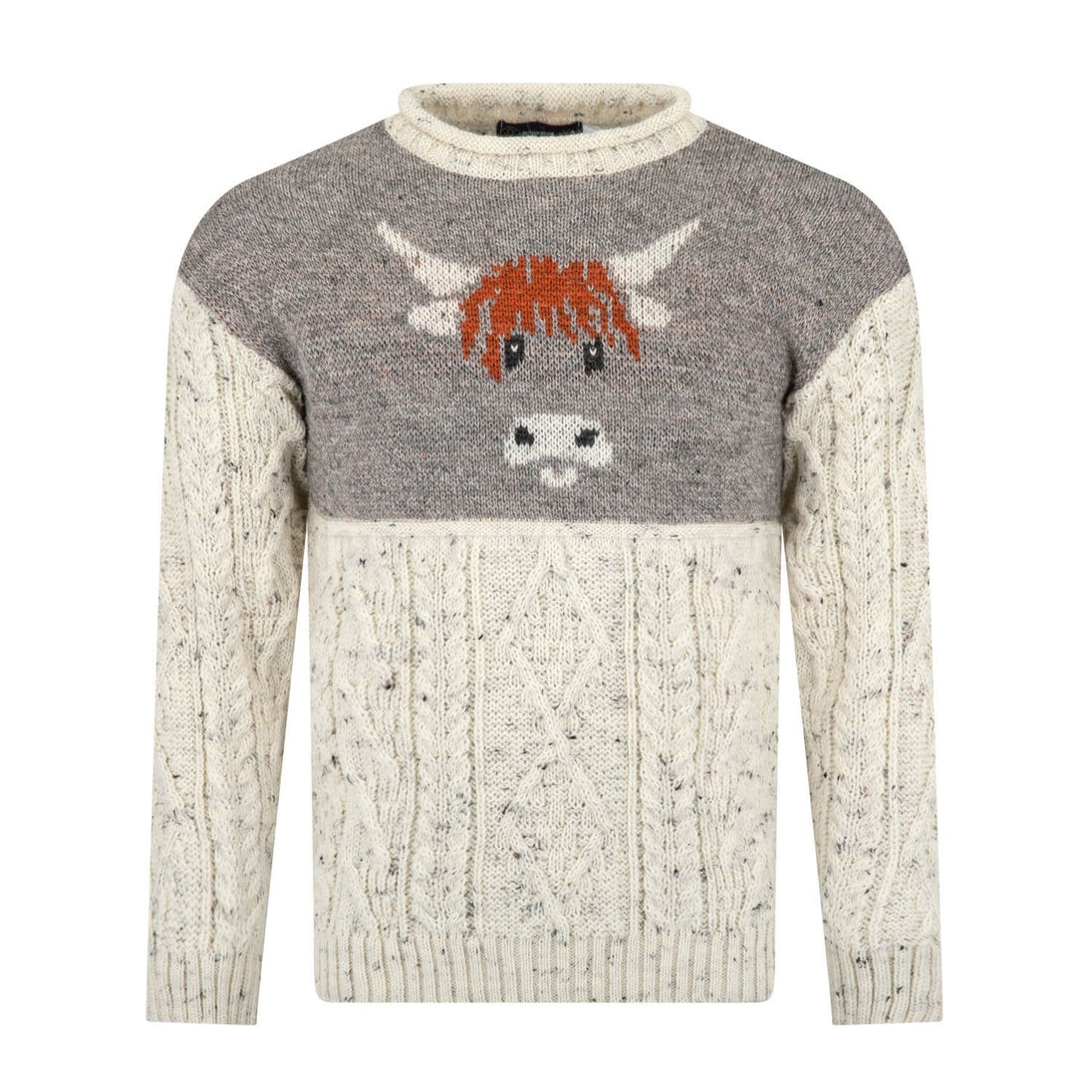 - Pure British Wool Unisex Highland Cow Arran Pullover