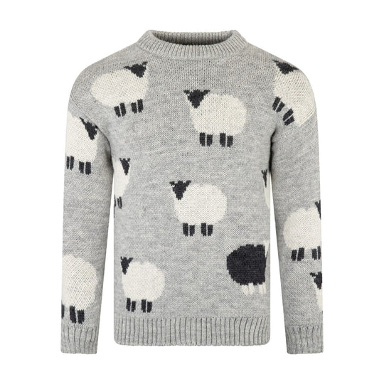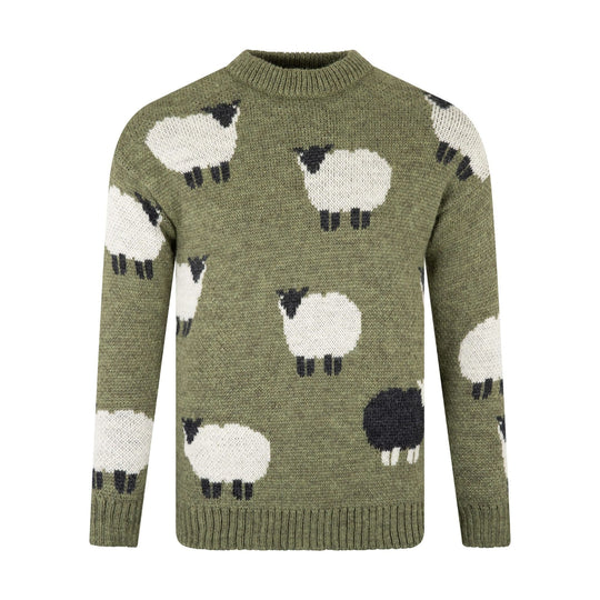 Pure British Wool Unisex Sheep Scene Arran Pullover