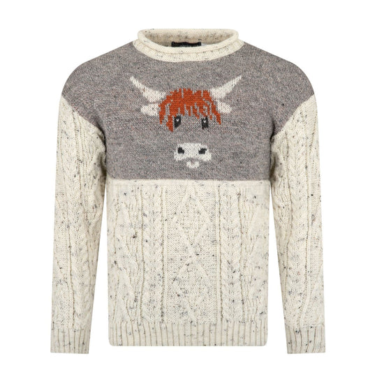 - Pure British Wool Unisex Sheep Scene Arran Pullover