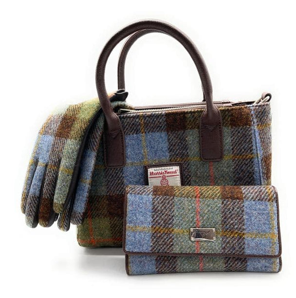 Ladies Authentic Harris Tweed Small Tote Bag With Matching Purse & Gloves Set MacLeod Tartan