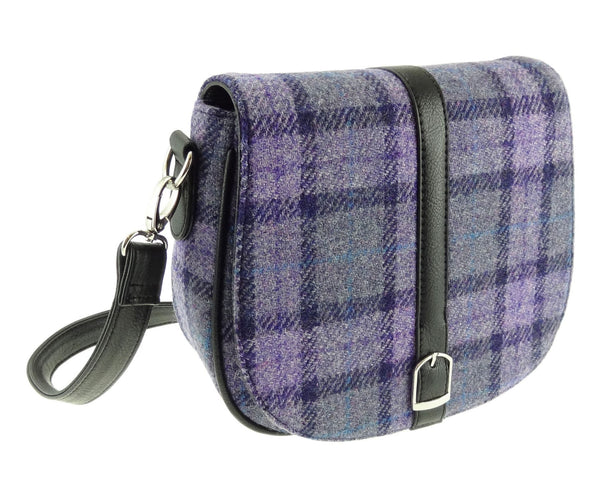 Ladies Authentic Harris Tweed Shoulder Bag Blue/Purple Check on Grey