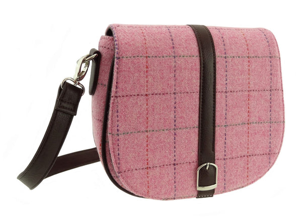 Ladies Authentic Harris Tweed Shoulder Bag Deep Pink Tartan