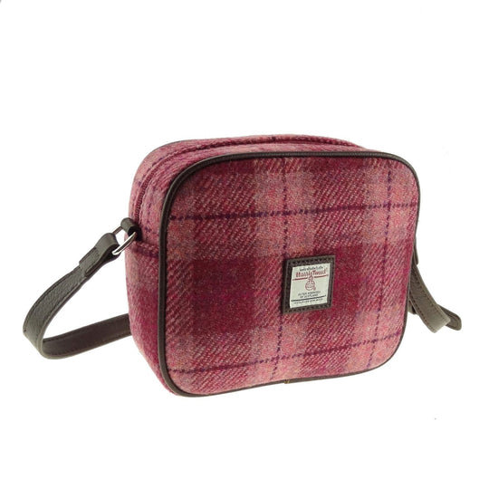Ladies Authentic Harris Tweed Almond Square Mini Bag Grey & Red Check