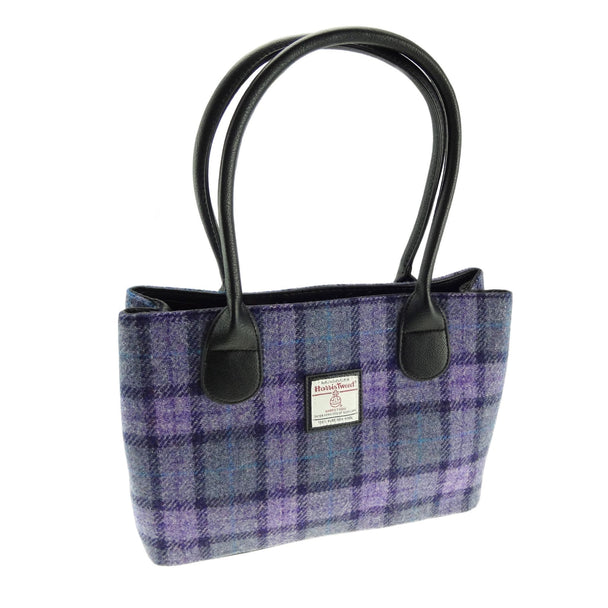 Ladies Authentic Harris Tweed Classic Handbag Purple Multi Check