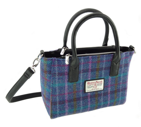 Ladies Authentic Harris Tweed Small Tote Bag Purple Multi Check