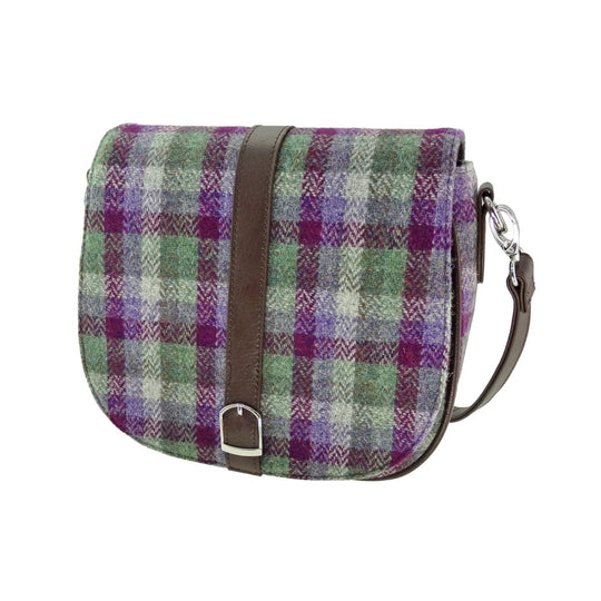 Ladies Authentic Harris Tweed Almond Square Mini Bag Muted Green & Purple Tartan