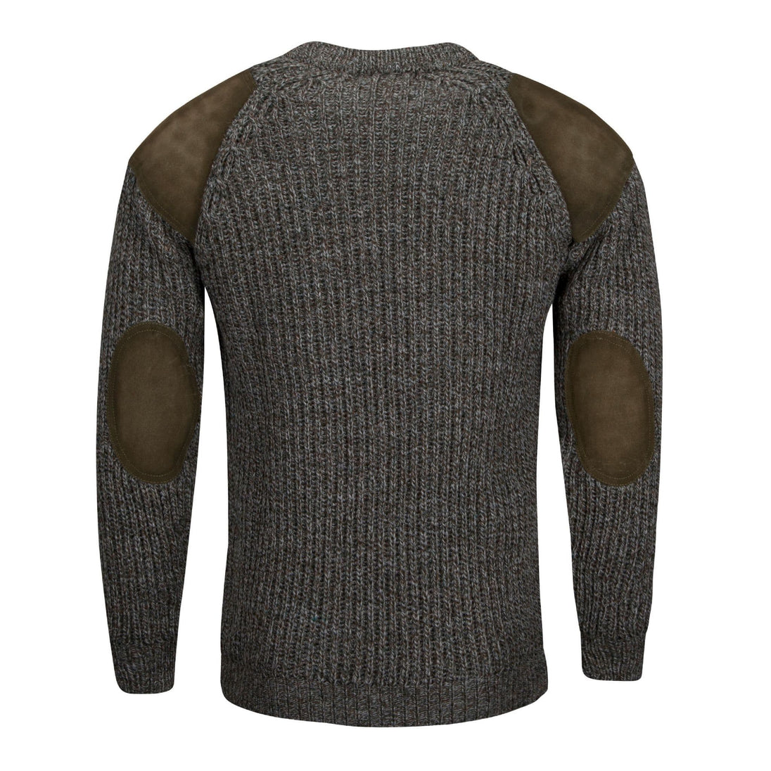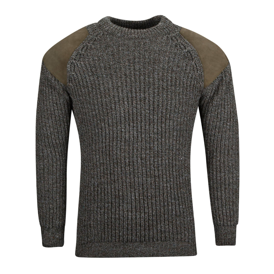 Pure British Wool Countryman Patch Crew Neck Derby Tweed Arran Jumper