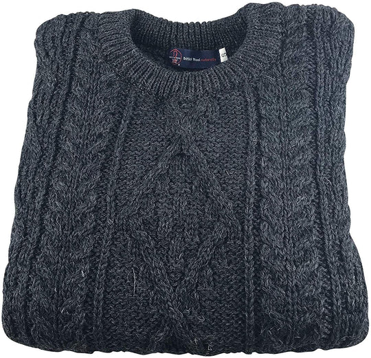 Gents Pure British Wool Charcoal Aran Jumper