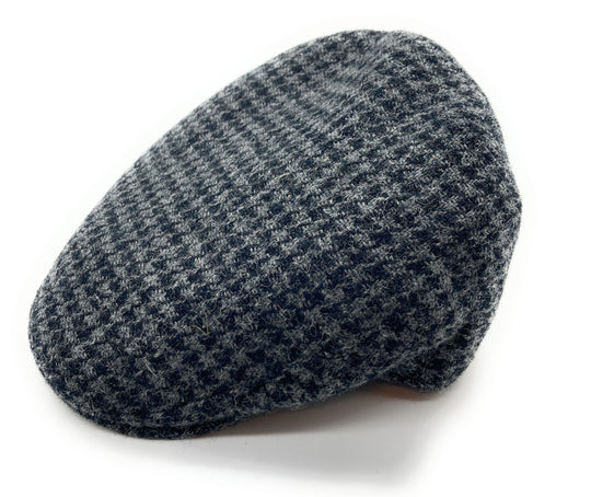 Gents Grey & Black Dogtooth Harris Tweed Flat Cap