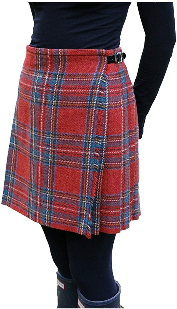Ladies Acrylic Wool Classic Royal Stewart Tartan Broad Waistband Mini Kilt