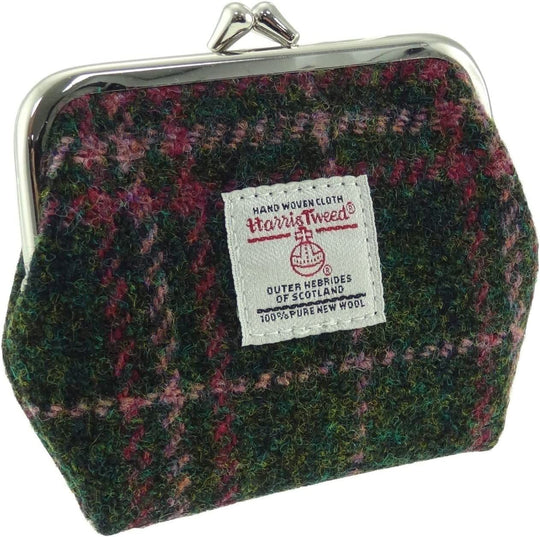Ladies Harris Tweed Small Coin Purse in Dark Green and Plum Check