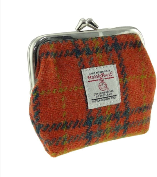 Ladies Harris Tweed Small Coin Purse in Deep Orange Check