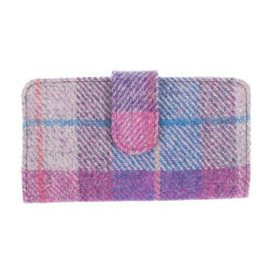 Ladies Authentic Harris Tweed Purple & Pink Check Long Clasp Purse