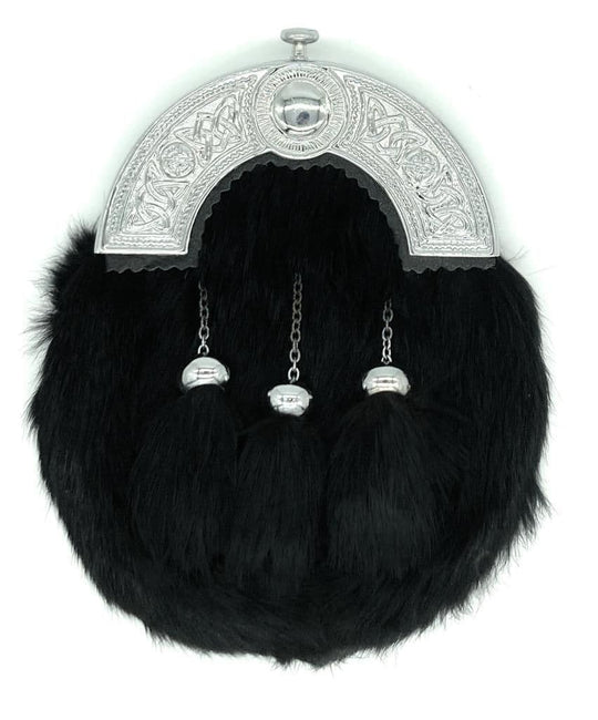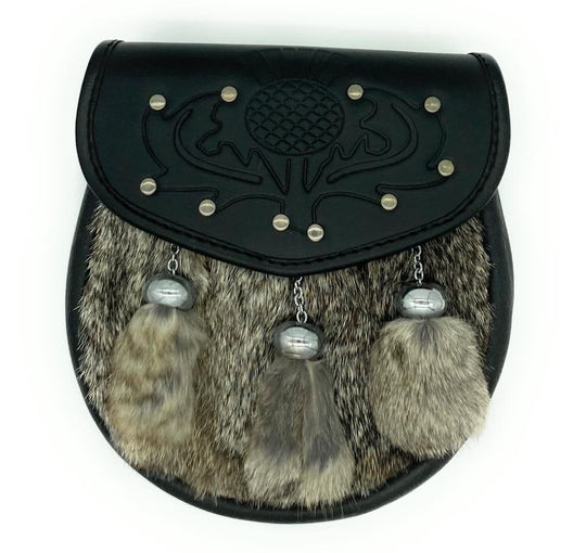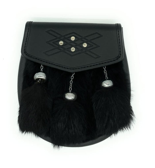Scottish traditional full dress celtic circle with studs rabbit fur kilt sporran & chain belt