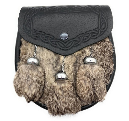 Scottish traditional full dress celtic circle with studs rabbit fur kilt sporran & chain belt