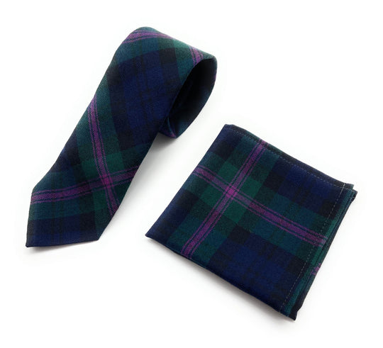 Gents Pure Wool Douglas Tartan Tie & Matching Pocket Square Set - Made in Scotland