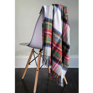 Pure Lambswool Stewart Silver Dress Tartan Rug/Blanket - Made in Scotland