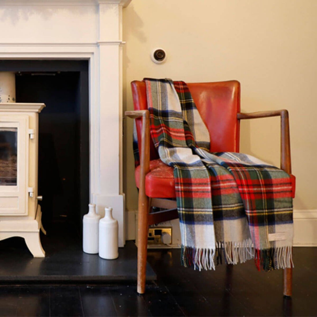- Pure Lambswool Stewart Silver Dress Tartan Rug/Blanket - Made in Scotland