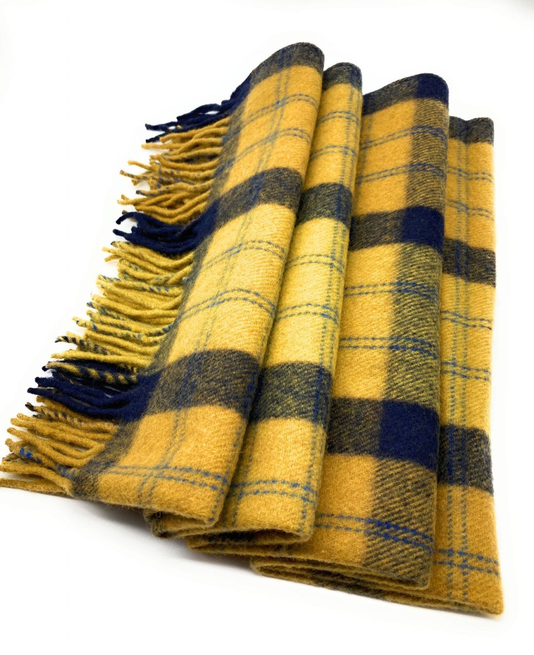 Wool Blend Yellow Check Tartan Knee Travel Rug Blanket