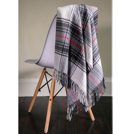 Pure Lambswool Graphite Tartan Rug/Blanket - Made in Scotland