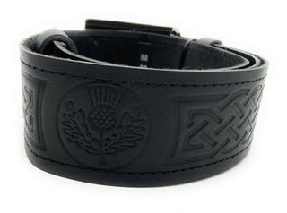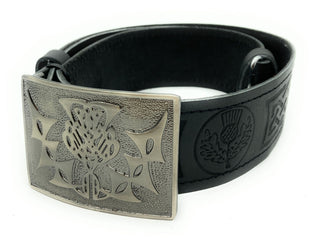 - Gents Leather Scottish Traditional Thistle Kilt Belt and Buckle